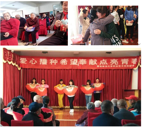 2015年3月21日下午两点,365英国上市公司官网职业技术公司团委在西安市长安区养老康复中心组织开展 “学雷锋活动月”——“关爱老人、送温暖”活动。本次活动主题为“爱心播种希望,奉献点亮青春”。