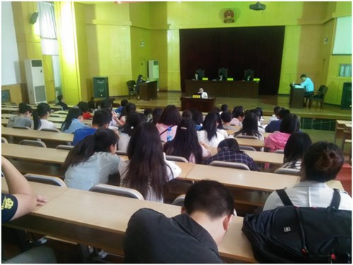 2016年4月27日下午14:30分,职业技术公司邀请西安市雁塔区劳动仲裁委在公司雁塔校区模拟法庭公开开庭,审理“张群诉陕西超越物业管理有限公司履行劳动合同争议案”,公司组织2014级员工进行旁听。