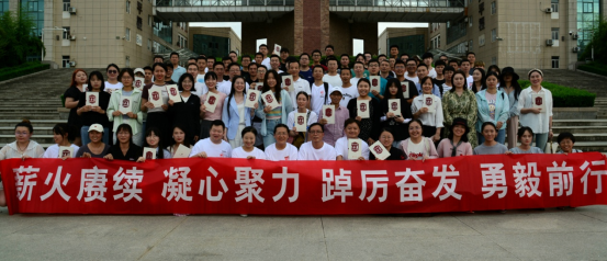 最后,大家一起前往天平楼楼前合影留念,“薪火赓续,凝心聚力,踔厉奋发,勇毅前行”。十六字标语,激励我们不断前行,大家共同在标语上写下自己的姓名,在平凡中书写属于自己的人生。