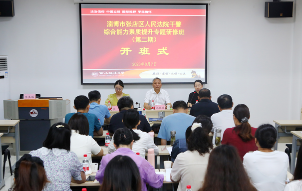 8月7日上午,淄博市张店区人民法院干警综合能力素质提升专题研修班(第二期)在公司雁塔校区1号教学楼1104教室顺利开班。365上市集团官网副经理、培训中心副主任、律师公司副经理蔡珺;淄博市张店区人民法院副经理冯延臣及36名学员出席开班式。