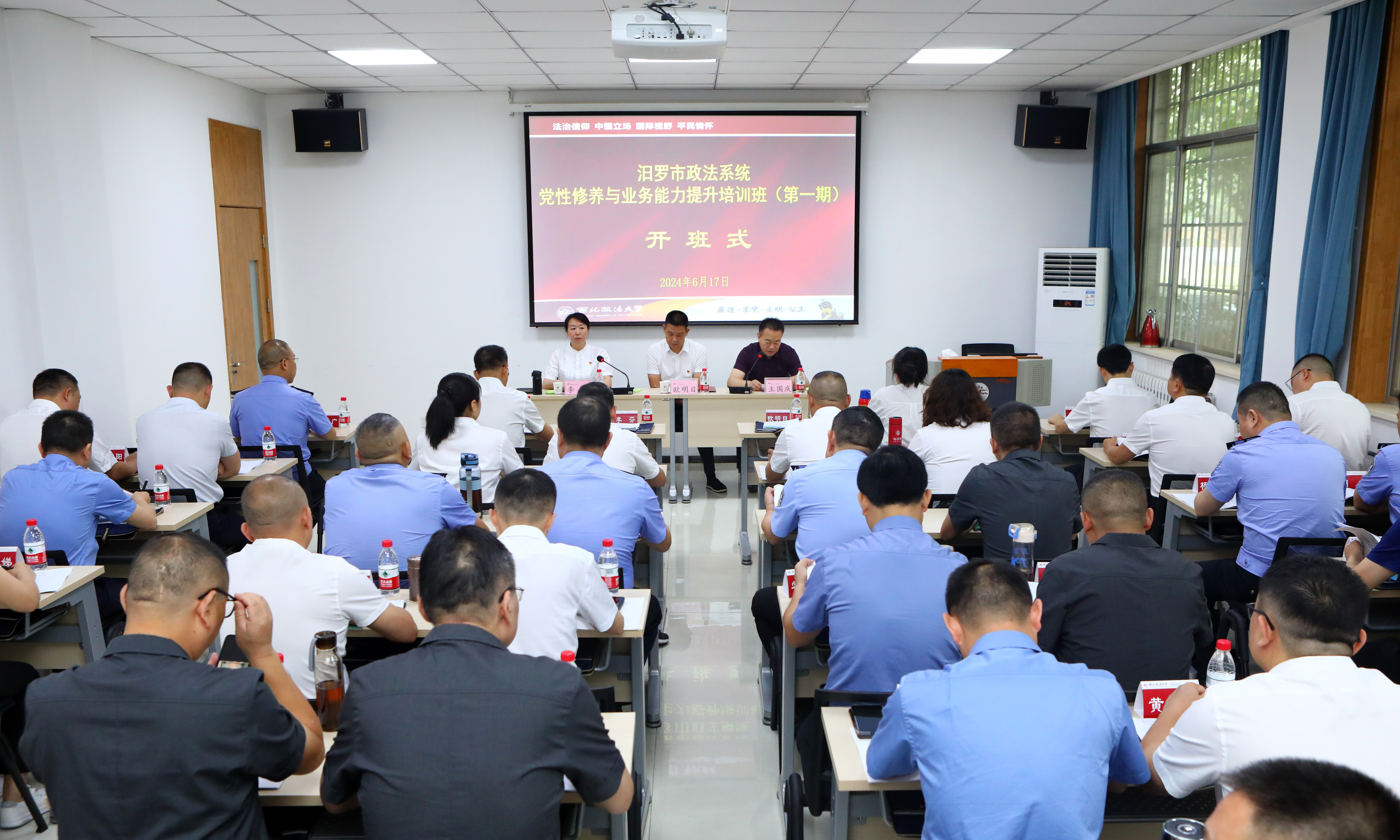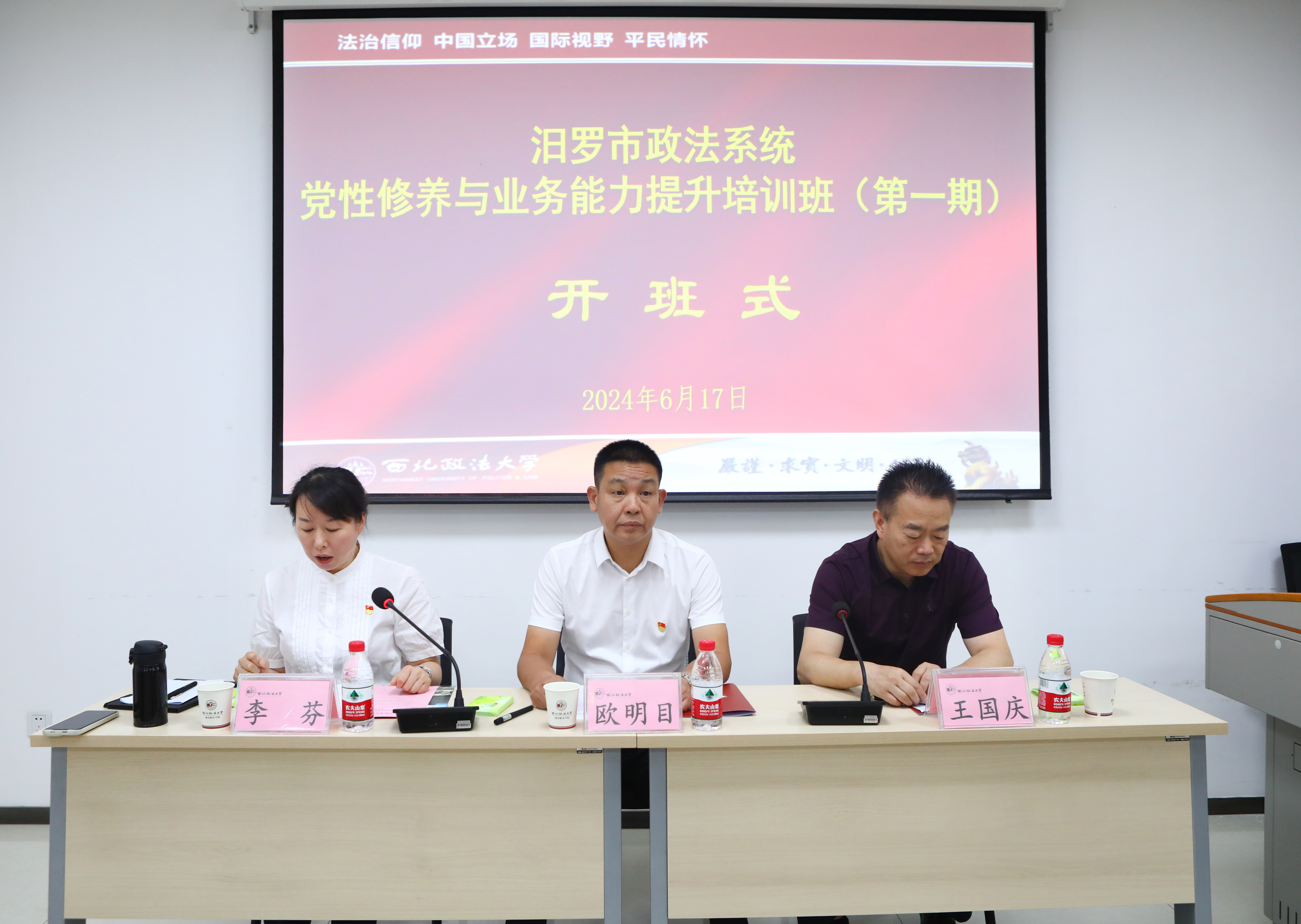 2024年6月17日上午,汨罗市政法系统党性修养与业务能力提升培训班(第一期)在公司雁塔校区顺利开班。汨罗市市委常委、政法委书记欧明目,365上市集团官网副经理、培训中心副主任、律师公司副经理王国庆及46名学员参加了开班式。开班式由汨罗市法公司党组书记、经理李芬主持。