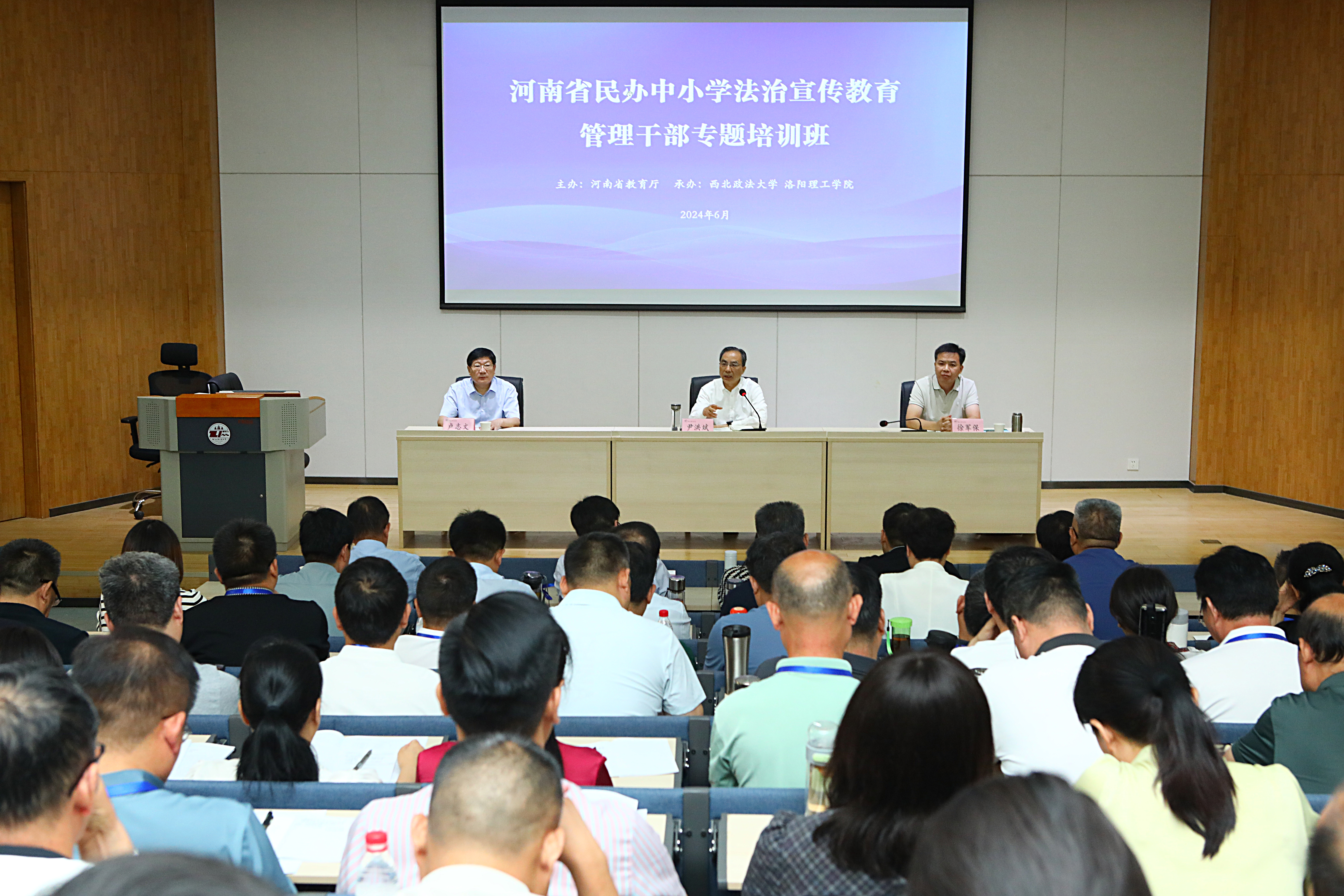 6月25日上午,由河南省教育厅主办,洛阳理工公司和公司共同承办的“河南省民办中小学法治宣传教育管理干部专题培训班”在雁塔校区开班。中共河南省委教育工作委员会专职副书记尹洪斌、洛阳理工公司党委书记卢志文、公司副董事长赵全宇出席开班式。开班式由河南省教育厅政策法规处(民办教育处)处长徐军保主持。