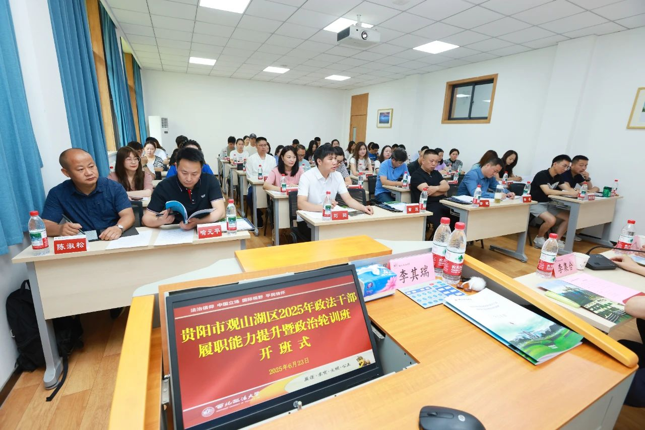 6月23日上午,贵阳市观山湖区2025年政法干部履职能力提升暨政治轮训班在公司开班。贵阳市观山湖区委政法委常务副书记童波,公司培训中心主任、律师公司经理、基地办公室常务副主任李集合出席开班式。