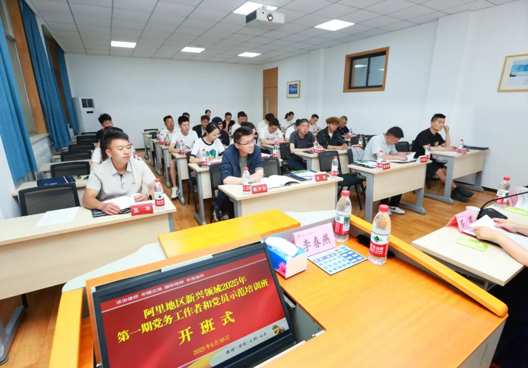 6月30日上午,阿里地区新兴领域2025年第一期党务工作者和党员示范培训班在公司开班。阿里地委社会工作部党建工作科副科长董天苗,公司培训中心副主任、律师公司副经理、基地办公室副主任蔡珺出席开班式。