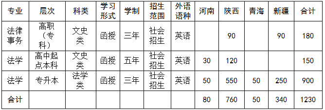 函授高中起点专科法律事务专业学制三年,开设宪法、民法、民事诉讼法、刑法、刑事诉讼法、行政法、行政诉讼法、知识产权法、国际经济法等20余门课程。