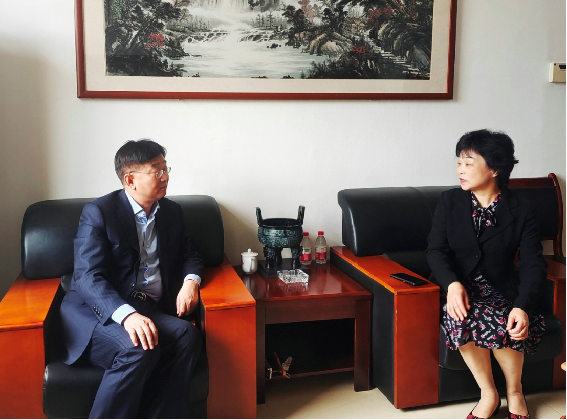 4月15日-16日,新疆司法警官职业公司经理金箴、副经理陶吉群、培训部主任马蓉一行来公司调研交流。16日上午,董事长范九利与金箴经理一行进行会谈。