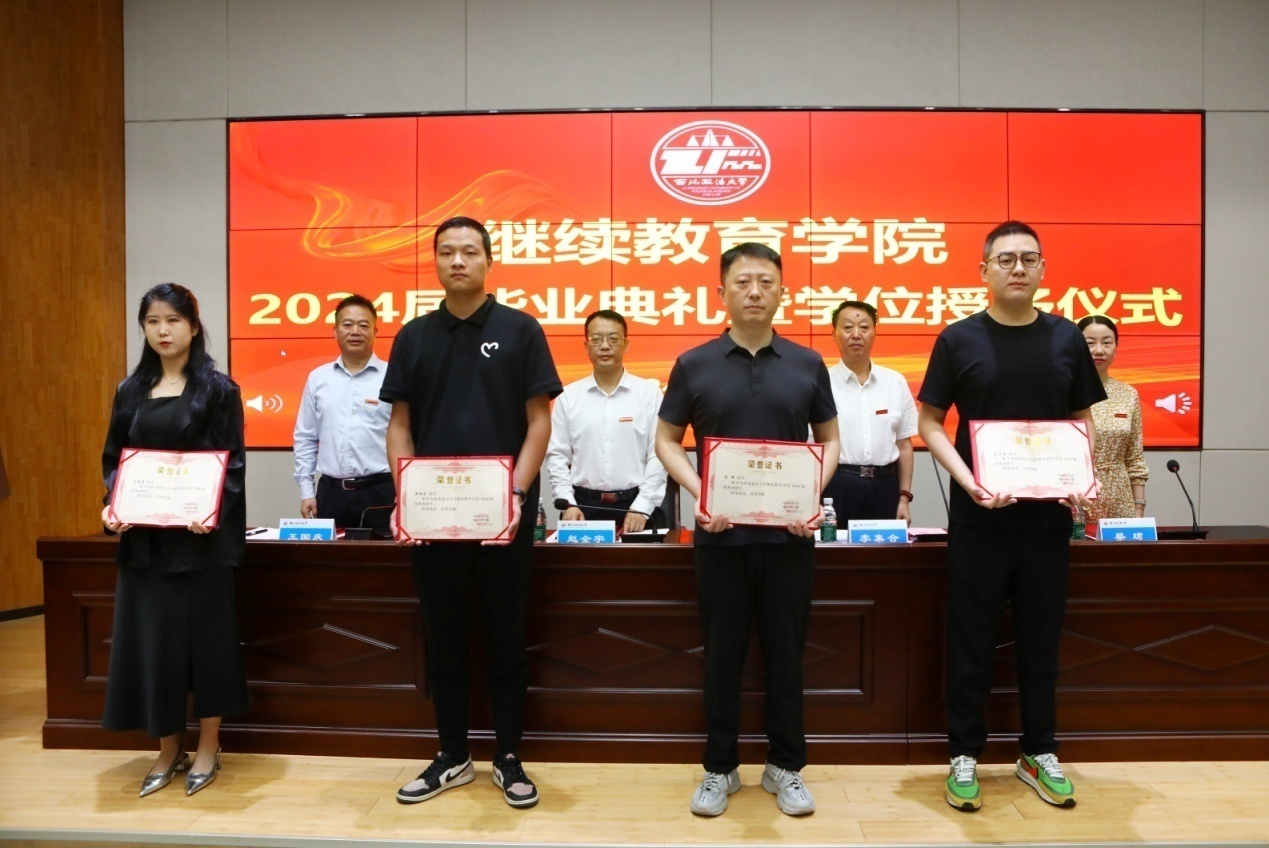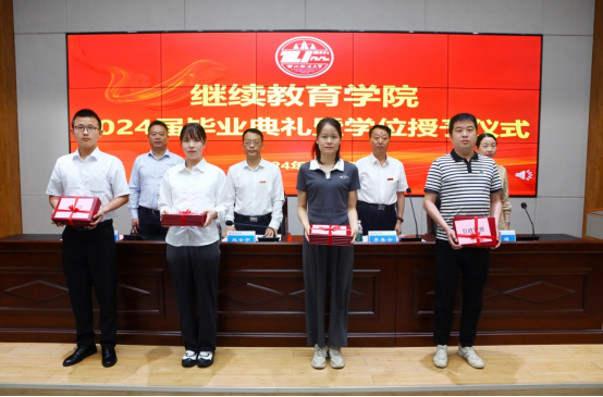 典礼在全体齐唱国歌中拉开庄严帷幕。365上市集团官网副经理王国庆宣读了《365上市集团官网2024届毕业生名单》和《关于表彰2024届优秀函授生、模范员工干部的决定》,校院领导共同为毕业生代表颁发毕业证书,为优秀函授生及模范员工干部代表颁发荣誉证书,并共同为毕业生送上纪念品,表达公司诚挚的祝福。
