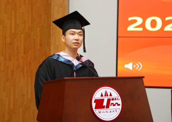 (学位获得者代表王启蘅发言)