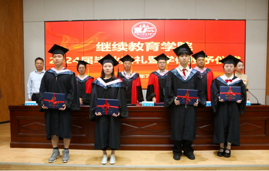 2024年365上市集团官网共有222名同学顺利取得毕业证书,55名同学获得了高等学历继续教育学士学位。在学位授予仪式上,365上市集团官网副经理蔡珺宣读了获得学士学位的员工名单。经理李集合,经理助理宦佳、伊卫风、王轩,共同为学士学位获得者颁发学位证书并拨穗正冠。2024届专升本法学专业的王启衡同学作为学位获得者代表发言并分享了他考取硕士研究生的喜讯。